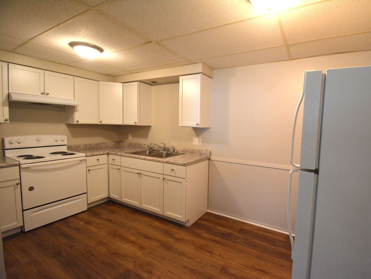 1 off street parking spot is available, and there is parking available on the street as well. Rent includes garbage, water/sewer, lawn care, and snow removal. Tenant pays for electricity (heat) and any phone/tv/internet service you choose. Coin operated laundry is available in the building. Renter's insurance is required.